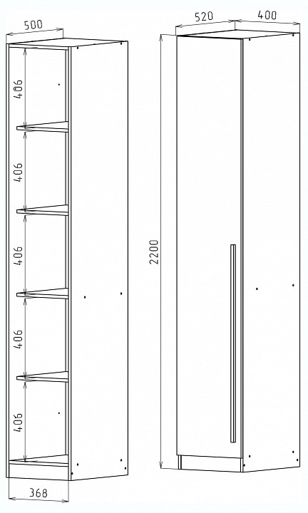 Габариты (ШхГхВ): 400x520x2200 мм.