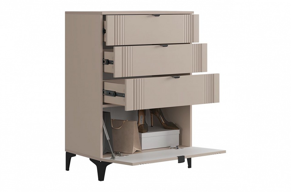 В комплект входят следующие позиции:, Комод Рич - 1 шт. , Тумба Рич - 1 шт. , Полка навесная Рич - 2 шт.