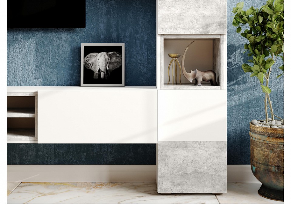 Тумба под ТВ Лонгфорд разноцветная белый, бетон светлый 2000x370x300.