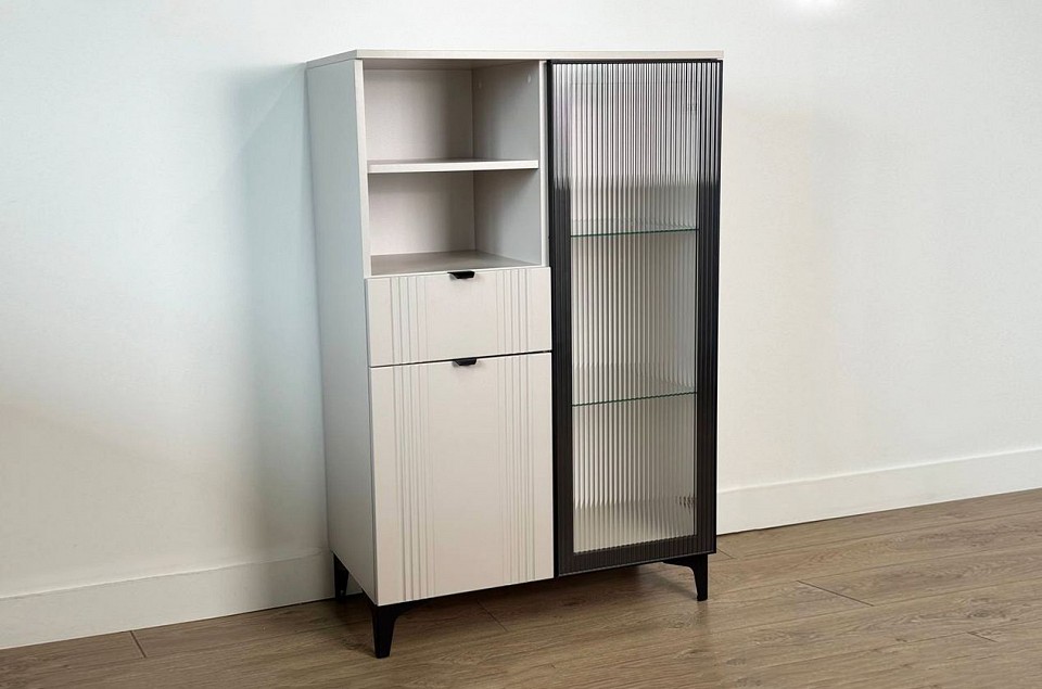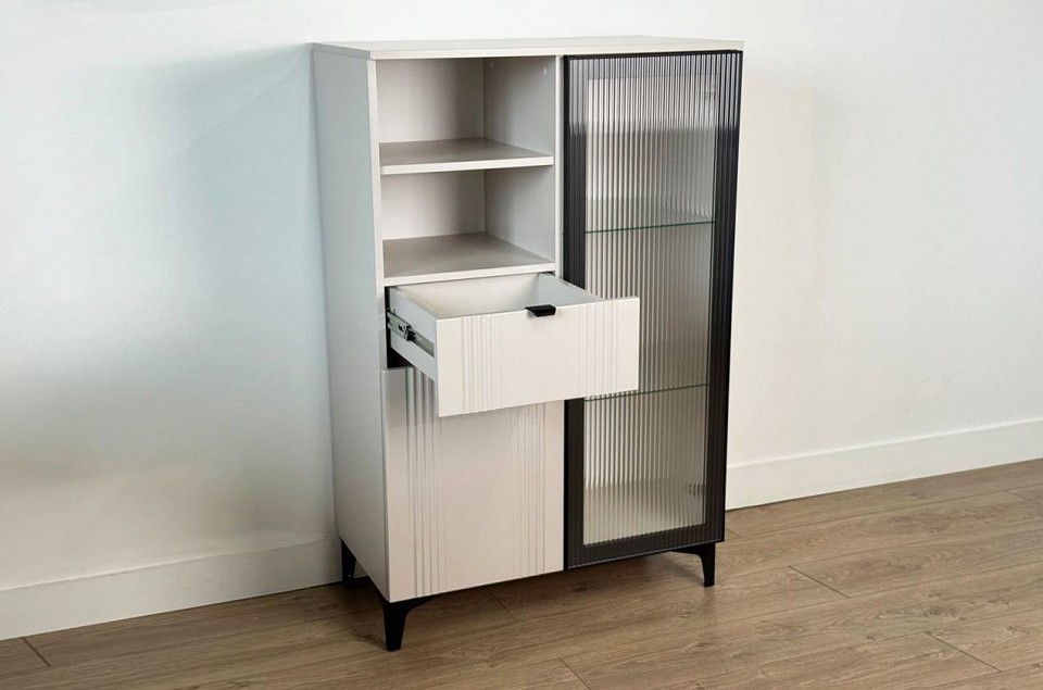 'Комод 2 Рич (со стеклом)' – это практичное и стильное решение для хранения вещей в современном интерьере. Комод выполнен из прочного ЛДСП, что гарантирует надежность и долговечность, а фасады из МДФ в плёнке ПВХ обеспечивают гладкую поверхность и устойчивость к повреждениям. Дизайн комода продуман до мелочей: с одной стороны расположена стеклянная дверца, за которой находится просторное пространство для хранения. С другой стороны – ниша с открытой полкой, выкатной ящик и ещё одна глухая дверца, что позволяет гибко организовать хранение и поддерживать порядок в доме. 'Комод 2 Рич (со стеклом)' подойдёт как для спальни, так и для прихожей, гармонично вписываясь в разные стили интерьера. Это универсальное решение, сочетающее в себе функциональность и эстетику.