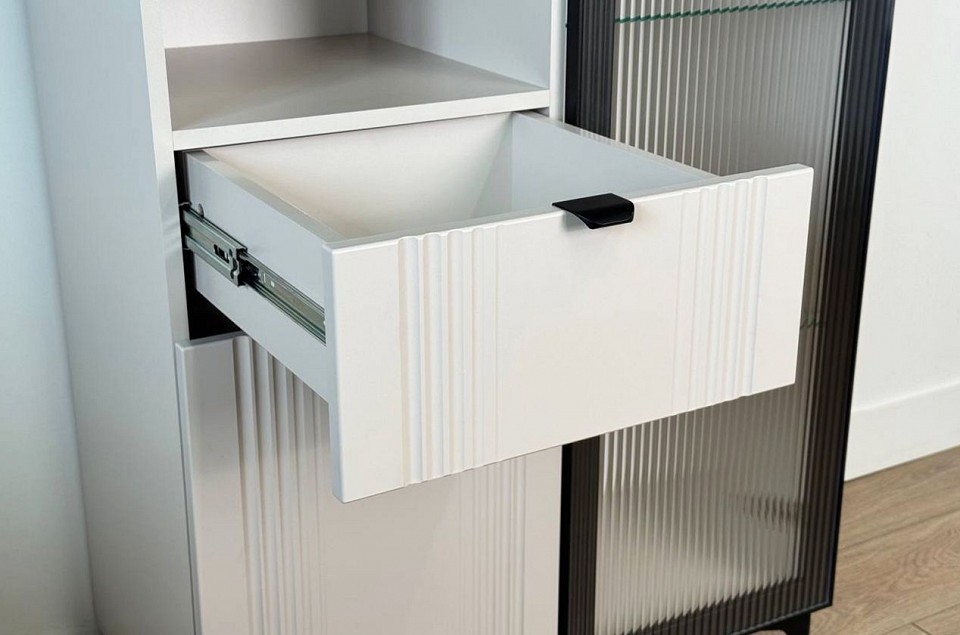 - Комплектация: 1 ящик, 2 дверцы, 4 полки.