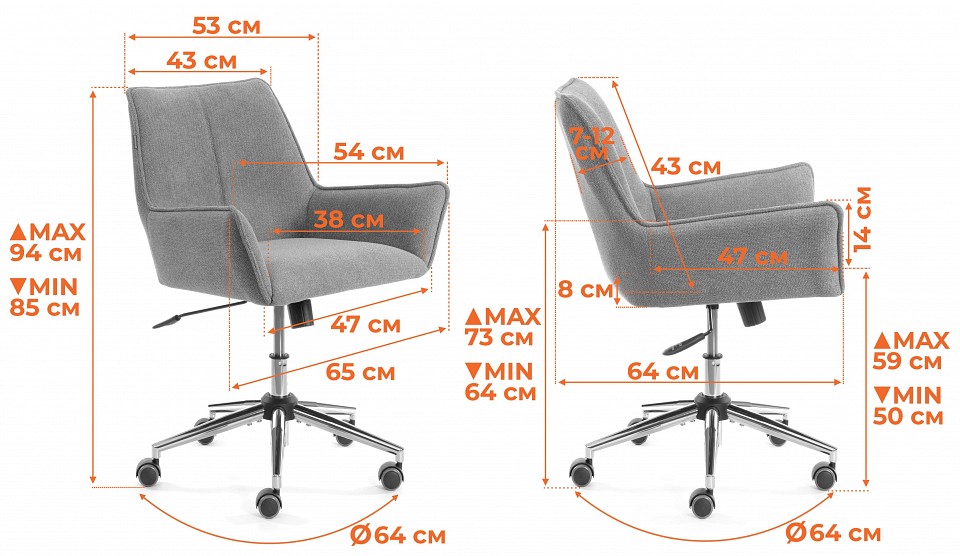 Кресло компьютерное Murano разноцветная светло-серый хром 650x640x850.