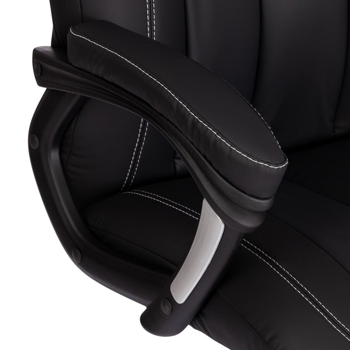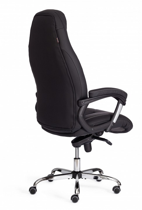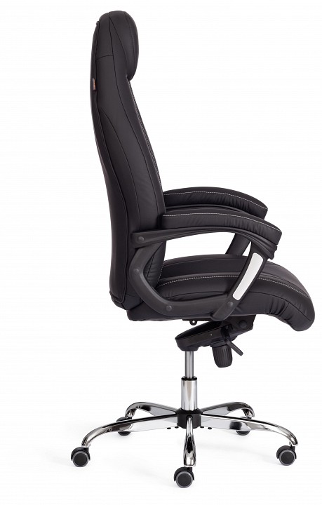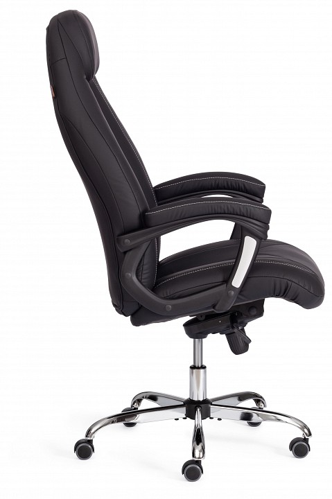 Практичное и функциональное компьютерное кресло Boss lux – необычный акцент в пространстве вашего дома или офиса. Модель прекрасно подойдет как для кабинета руководителя, так и для переговорной комнаты. Сиденье с мягким наполнителем из пенополиуретана стандартной плотности (до 35 кг/м2) уменьшит усталость при длительной работе. Каркас офисного кресла изготовлен из фанеры толщиной до 15 мм. Такой материал обладает отличными эксплуатационными качествами, прочностью и долговечностью. Кресло регулируется по высоте и наклону с фиксацией в нескольких положениях до 15 градусов. Жесткость механизма качания настраивается при помощи специального барабана. Металлическая хромированная крестовина надежна, основательна и устойчива. Ролики из полиуретана с прорезиненными вставками не шумят при перемещении, не оставляют следов на напольном покрытии. Ролики и крестовина соответствуют стандарту BIFMA. В кресле используются газлифты 3 класса, он способен выдерживать вес до 120 кг. Удобный подголовник и фиксированные пластиковые подлокотники с мягкими накладками снизят нагрузку на шею и плечевой пояс. Экокожа, используемая при изготовлении кресла, выдерживает до 50 000 циклов на истирание по Мартиндейлу, мягкая ткань рогожка выдерживает до 40 000 циклов.