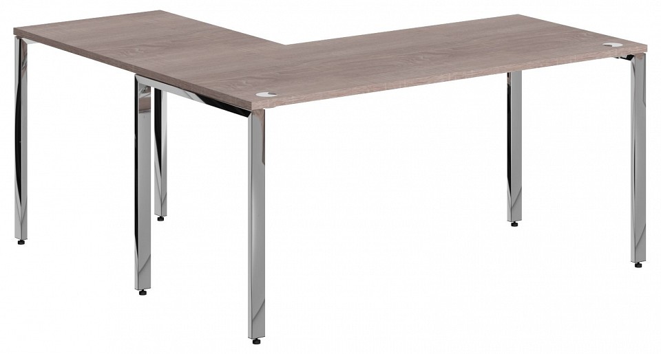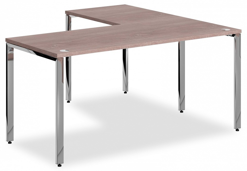 Столешница из ЛДСП 25 мм c кромкой ПВХ. Опоры металлокаркаса П-образной формы из полированной нержавеющей стали, труба 50х25х2мм с регулировкой внизу. Комплектуется двумя траверсами, окрашенными порошковой краской.