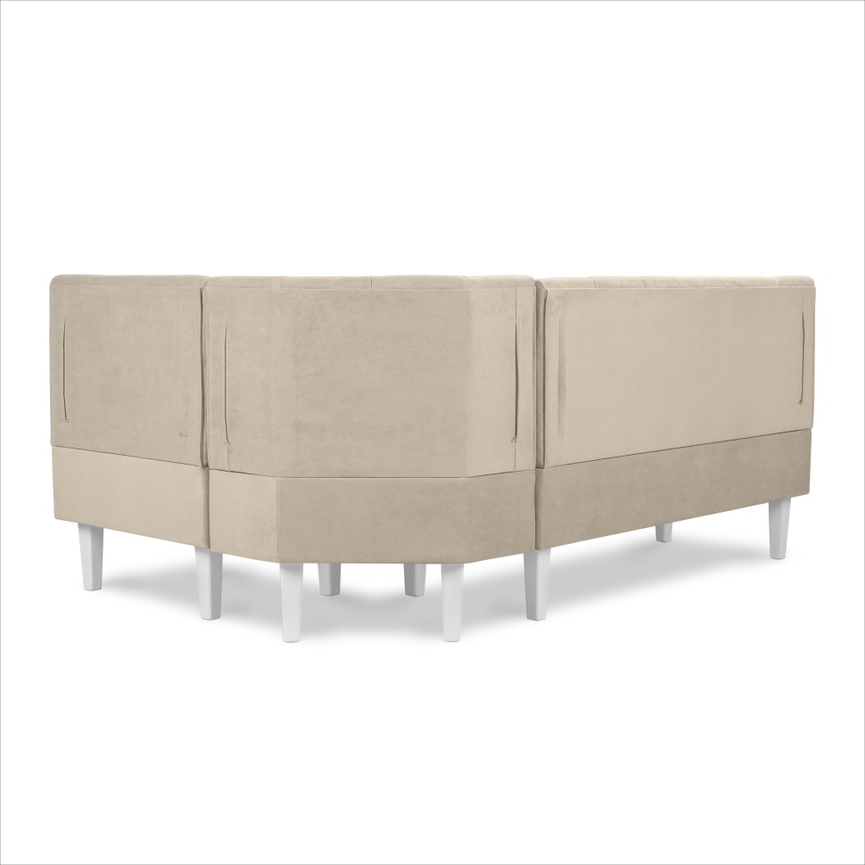 Кухонный угол "Лео" придаст изысканности интерьеру квартиры, дополнит обеденную зону кухни. Обивка в ткани велюр создаст уютную атмосферу и позволит комфортно провести время.Высота опор 21 см что позволяет совершать сухую и влажную уборку, в том числе при помощи робот пылесоса.Можно соединить несколько различных модулей между собой.