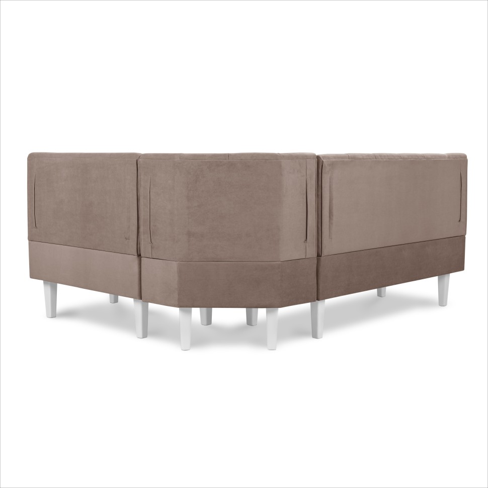 Кухонный угол "Лео" придаст изысканности интерьеру квартиры, дополнит обеденную зону кухни. Обивка в ткани велюр создаст уютную атмосферу и позволит комфортно провести время.Высота опор 21 см что позволяет совершать сухую и влажную уборку, в том числе при помощи робот пылесоса.Можно соединить несколько различных модулей между собой.
