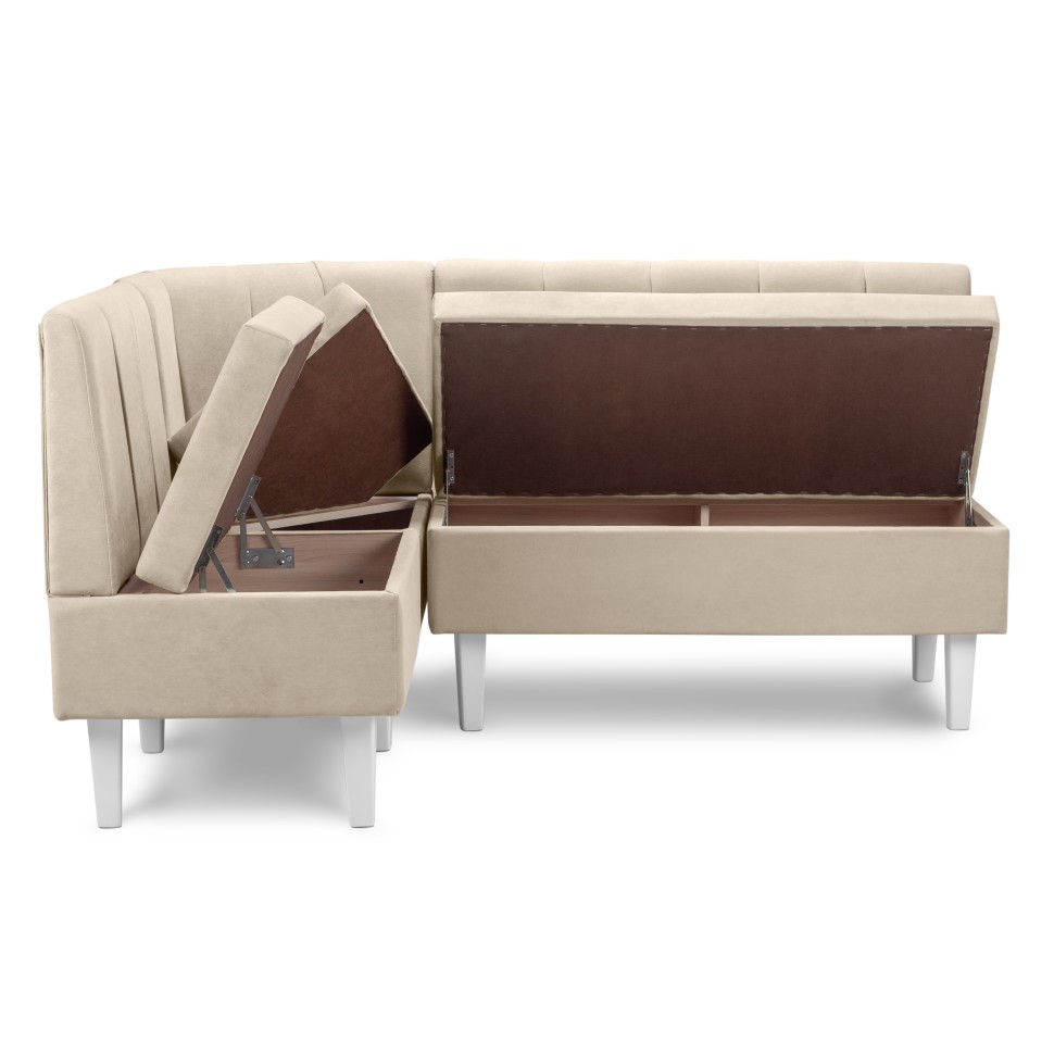 Кухонный угол "Лео" придаст изысканности интерьеру квартиры, дополнит обеденную зону кухни. Обивка в ткани велюр создаст уютную атмосферу и позволит комфортно провести время.Высота опор 21 см что позволяет совершать сухую и влажную уборку, в том числе при помощи робот пылесоса.Можно соединить несколько различных модулей между собой.