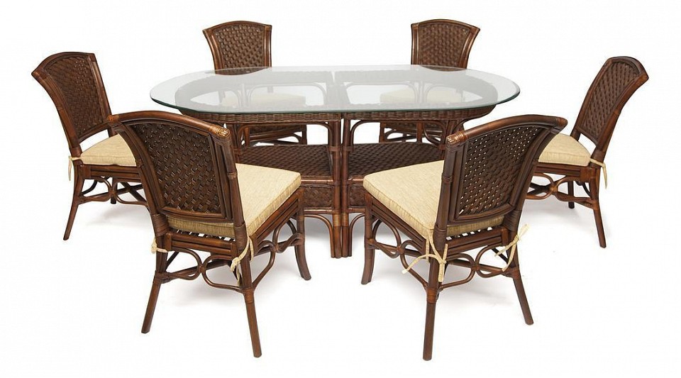 - Комплектация: стол обеденный - 1540x770x750 мм 6 стульев - 710x700x930 мм.