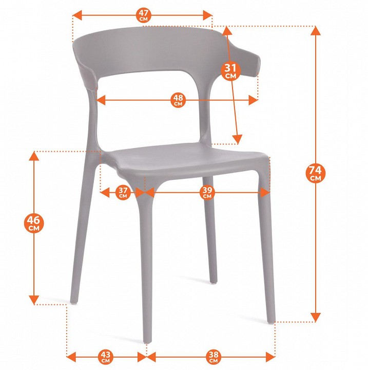 Стильный пластиковый стул TON из коллекции Modern является незаменимым предметом интерьера в городской квартире, на загородной террасе, приусадебном участке, веранде ресторана или кафе. Легкость и компактность дают возможность расположить стул в удобном для вас месте, переместить его в другую комнату или угол при необходимости. Удобное сиденье и спинка позволяют комфортно сидеть в течение длительного времени. Стул выполнен из прочного пластика темно-серого цвета. Он практичен, надежен, способен выдерживать большие нагрузки, устойчив к воздействию влаги, температурным перепадам и прост в уходе. Для вашего удобства на сиденье можно дополнительно приобрести декоративную подушку. Стул хорошо подойдет для гостиной, для кухни, для дачи, для террасы, для ресторана или для кафе. Стул поставляется в собранном виде.