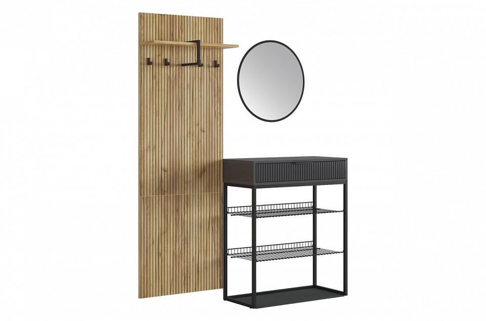 Набор для прихожей Мебельсон К1 разноцветная графит, дуб крафт золотой, черный 1350x334x1750.