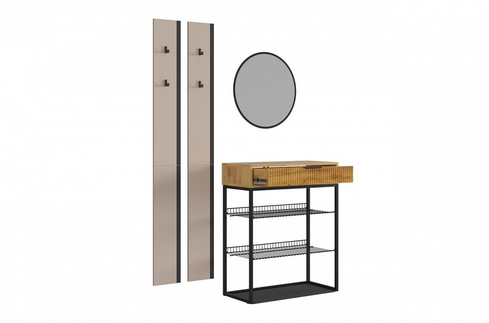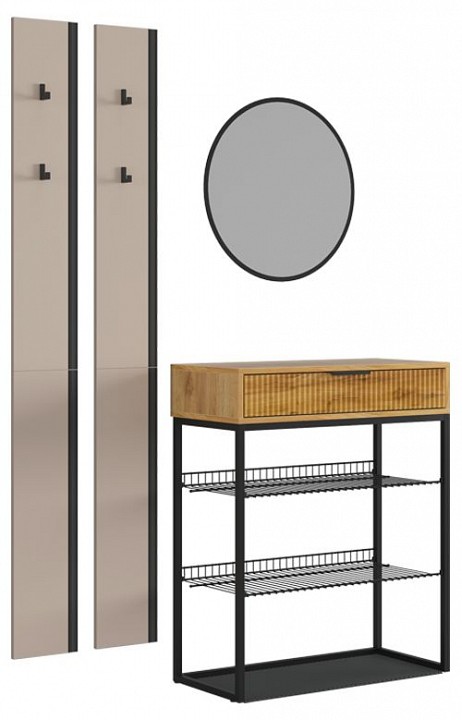 Набор для прихожей Мебельсон К19 разноцветная дуб крафт золотой, кашемир, черный муар, черный 1300x334x1750.
