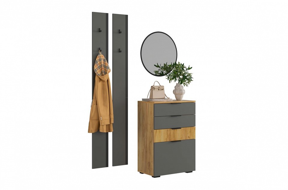 Набор для прихожей Мебельсон К21 разноцветная графит, дуб крафт золотой, черный 1150x353x1750.