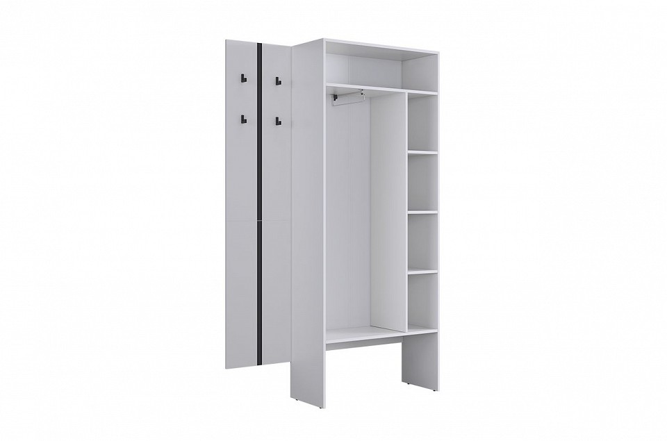 - Комплектация: вешалка настенная - 400х16х1750 мм, шкаф платяной - 800х349х1950 мм.