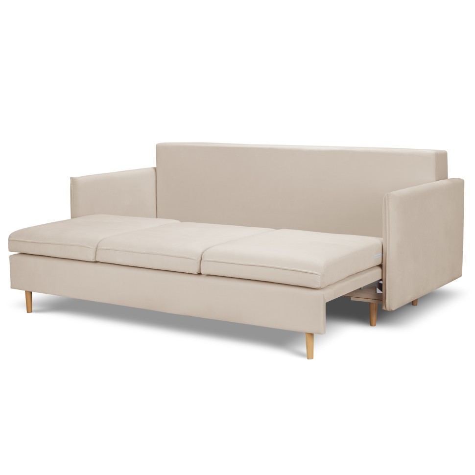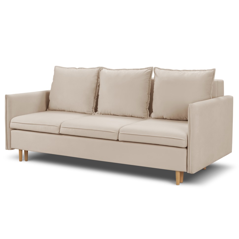 Диван воплощает представления о скандинавском стиле. Поэтому соответствует современным требованиям мебельной моды и является центром притяжения внимания в большинстве интерьеров. Диван имеет механизм трансформации, поэтому полностью раскрывает своё назначение. В диване предусмотрены мягкие сиденья на независимом пружинном блоке со съемными чехлами, 3 подушки. Ножки выполнены из массива березы