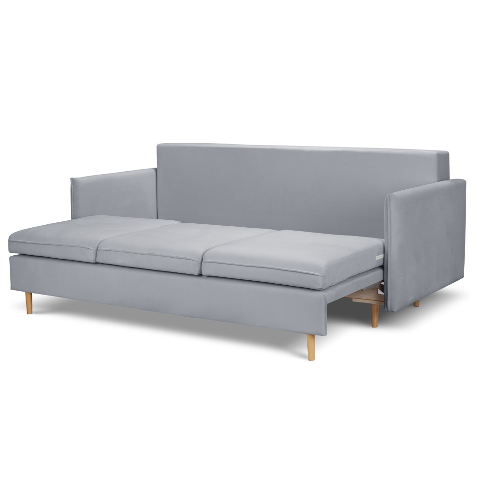 Диван воплощает представления о скандинавском стиле. Поэтому соответствует современным требованиям мебельной моды и является центром притяжения внимания в большинстве интерьеров. Диван имеет механизм трансформации, поэтому полностью раскрывает своё назначение. В диване предусмотрены мягкие сиденья на независимом пружинном блоке со съемными чехлами, 3 подушки. Ножки выполнены из массива березы