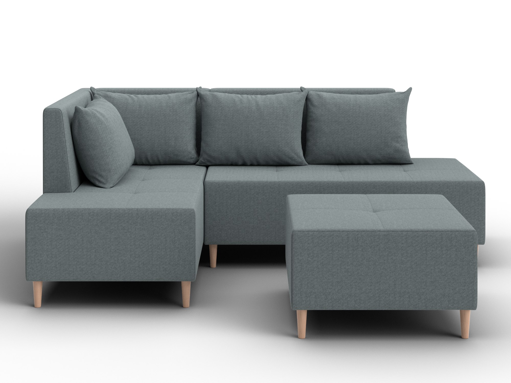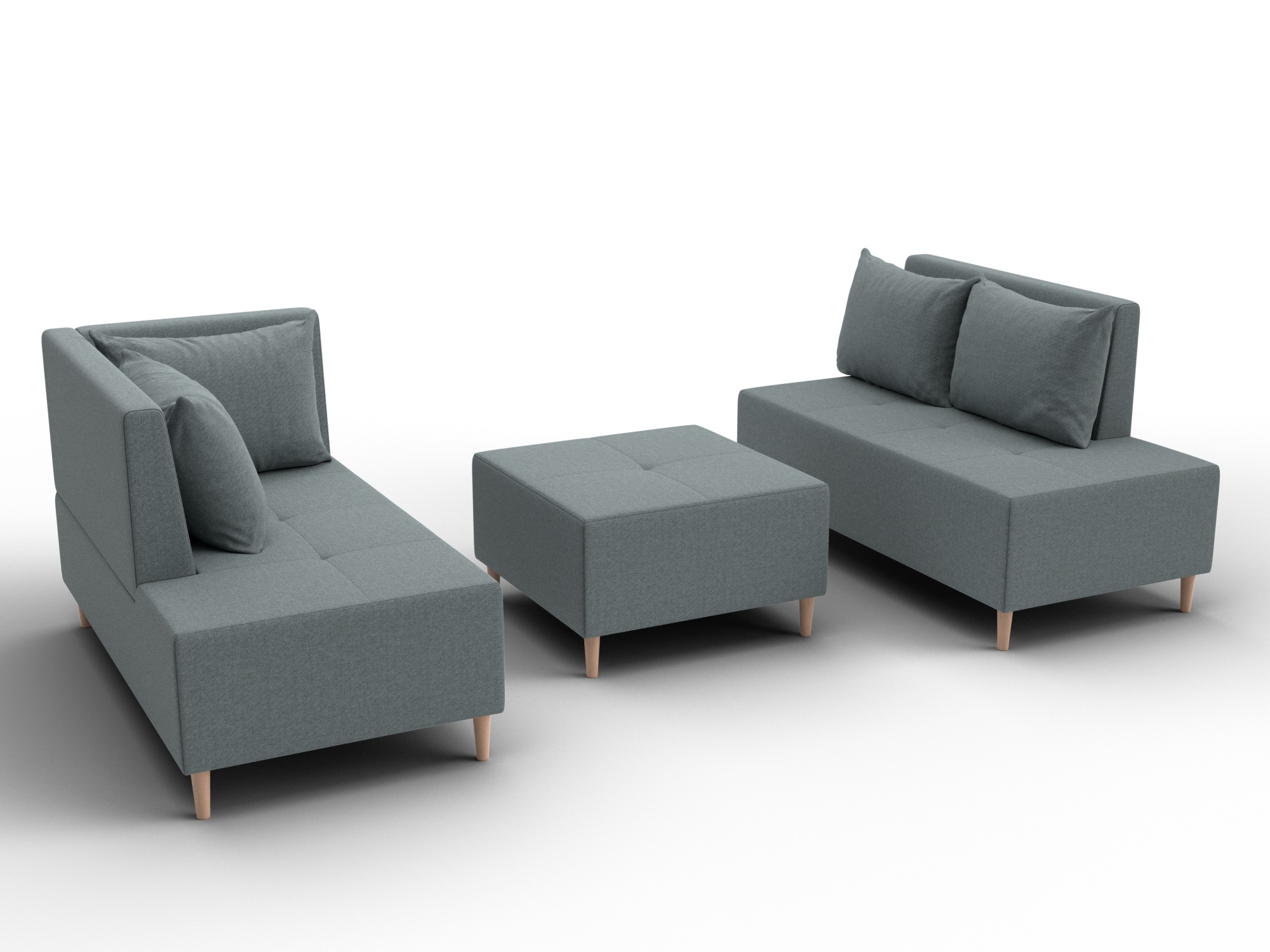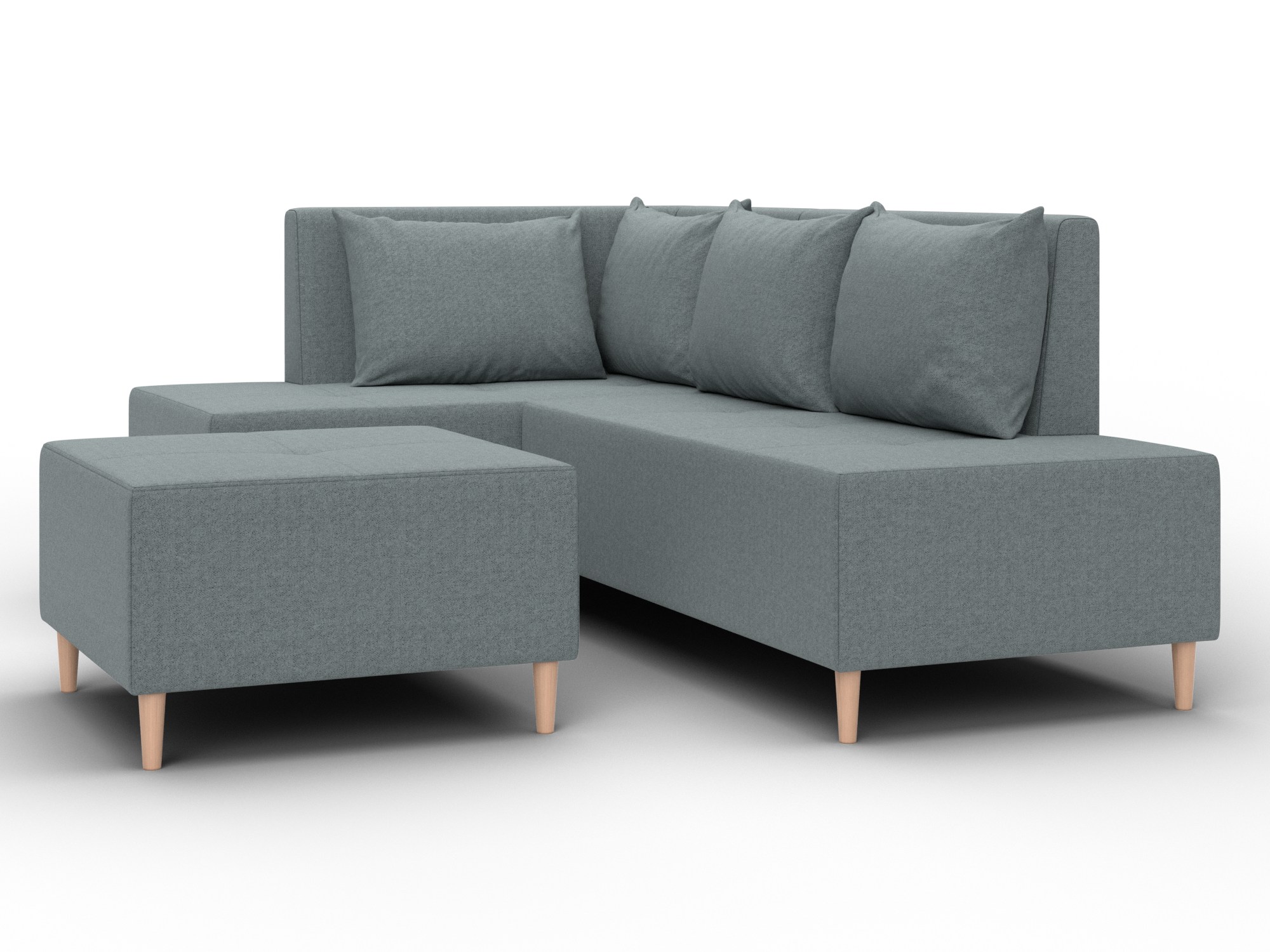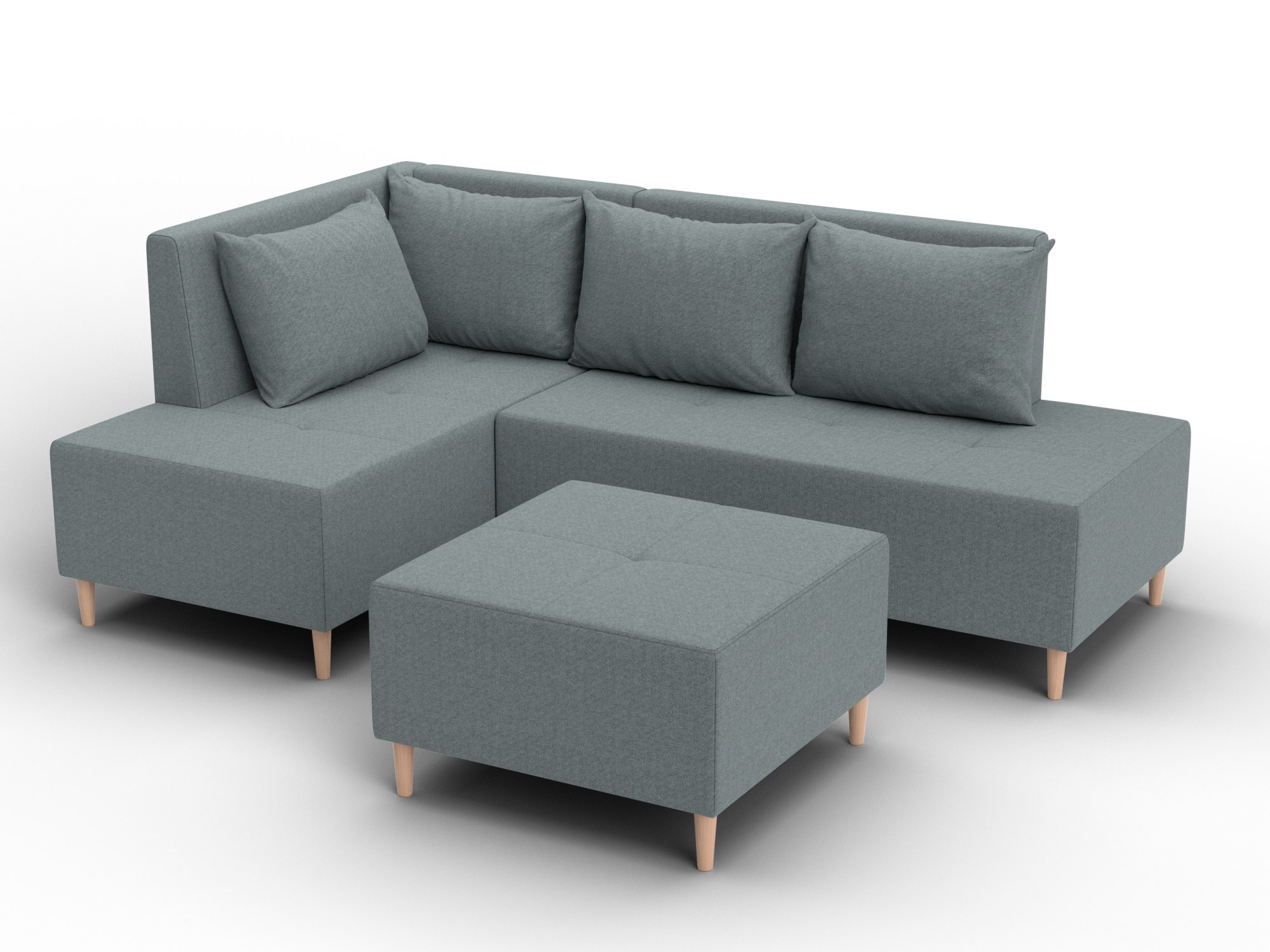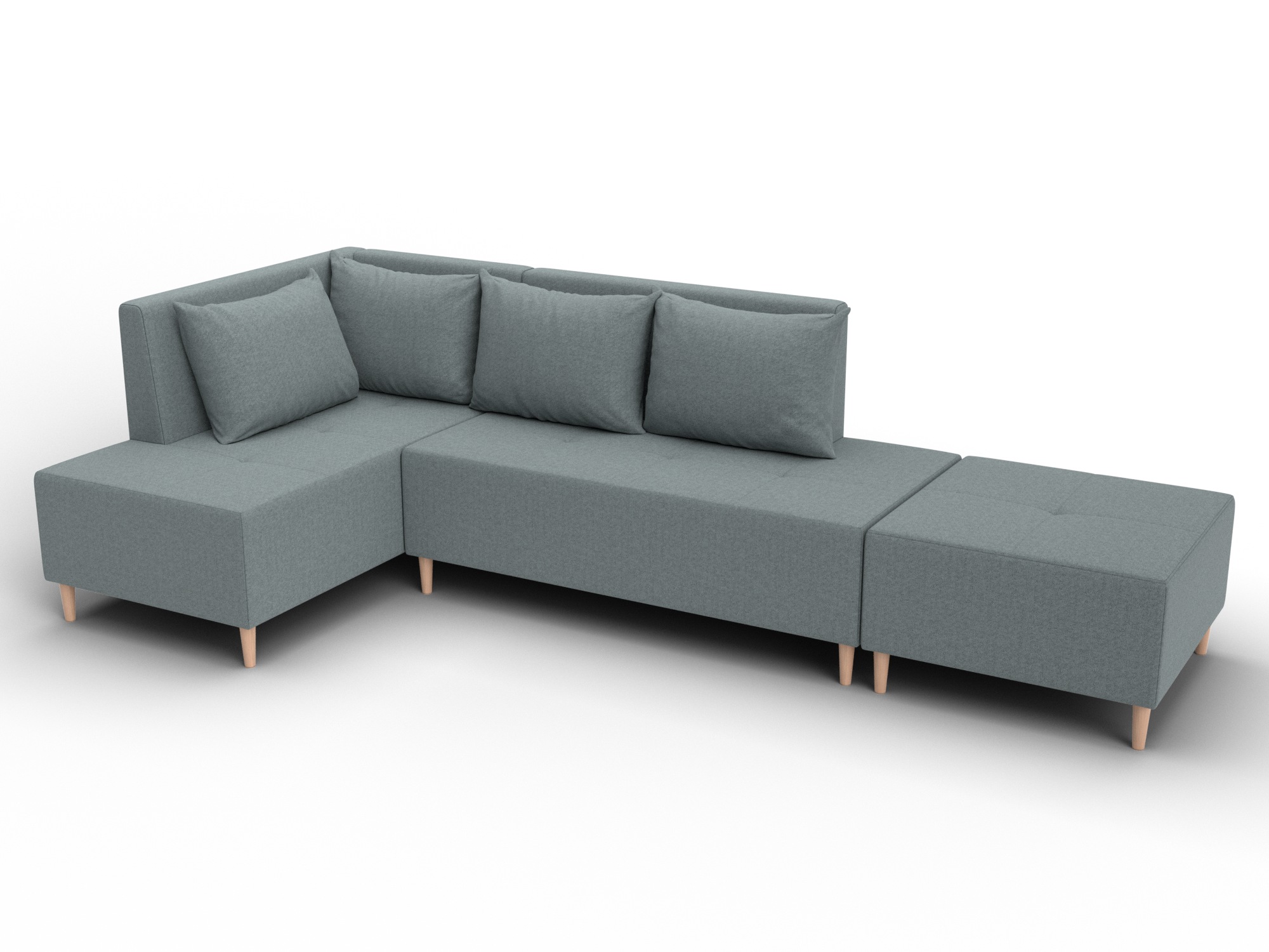 Модульный диван с пуфом Лига-126 – это современное решение для тех, кто ценит гибкость и функциональность. Модель состоит из двух основных модулей и отдельного пуфа. Вы можете собрать угловой диван, удобную зону отдыха или приставить пуф к дивану, чтобы удлинить спальное место. Прочный каркас из ДСП, ЛДСП, фанеры и бруса гарантирует надёжность и долгий срок службы. Мягкие съёмные подушки обеспечивают комфорт, а пуф (75×75×42 см) можно использовать как дополнительное сиденье, подставку для ног или небольшой столик. Высокие деревянные ножки придают дивану элегантный вид, обеспечивают устойчивость и облегчают уборку под ним. Диван прекрасно впишется в интерьер как гостиной, так и небольшой студии. Спальное место – 60×197 см, комфортное для одного взрослого. Широкий выбор расцветок позволяет подобрать оптимальный вариант под вашу стилистику. Особенности модульного дивана с пуфом Лига-126: - Два основных модуля + пуф – можно собирать в разных вариациях. - Пуф удлиняет диван, расширяет зону сидения или служит подставкой для ног. - Изготовлен из экологичных и гипоаллергенных материалов. - Высокие деревянные ножки – устойчивость, стиль и удобство уборки. - Спальное место 60×197 см для одного взрослого. Модульный диван с пуфом Лига-126 – это современное решение для тех, кто ценит гибкость и функциональность. Модель состоит из двух основных модулей и отдельного пуфа. Вы можете собрать угловой диван, удобную зону отдыха или приставить пуф к дивану, чтобы удлинить спальное место. Прочный каркас из ДСП, ЛДСП, фанеры и бруса гарантирует надёжность и долгий срок службы. Мягкие съёмные подушки обеспечивают комфорт, а пуф (75×75×42 см) можно использовать как дополнительное сиденье, подставку для ног или небольшой столик. Высокие деревянные ножки придают дивану элегантный вид и облегчают уборку. Спальное место – 60×197 см. Широкий выбор расцветок.