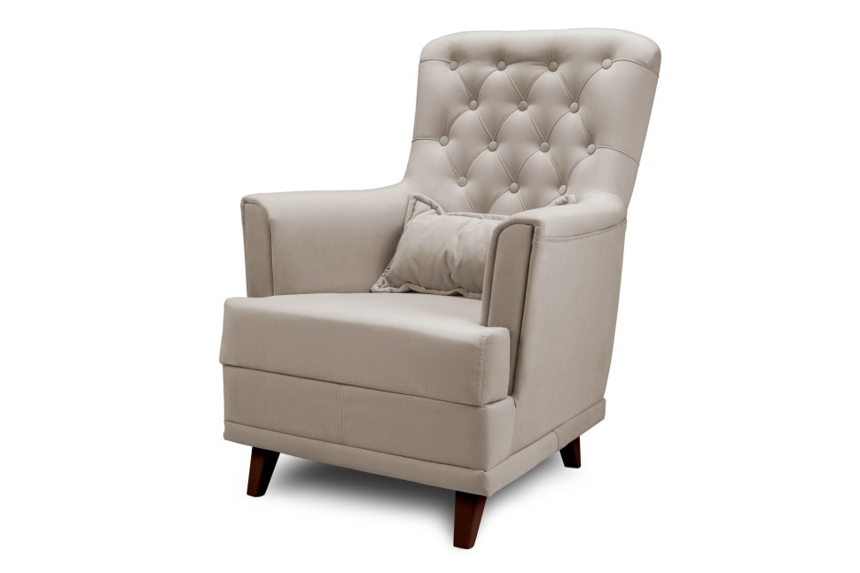 Ножки кресла изготовлены из прочного материала, поэтому выдерживают хороший вес. Сиденье сделано толстым - отдыхать на нём вдвойне приятно. Чтобы создать ещё большее удобство, мы сделали широкие подлокотники. На них можно положить руки и наслаждаться отдыхом, просматривая любимое кино или читая книгу.Для придания стильных ноток, на спинке расположены пуговицы. Они создают дополнительный шарм мебели.Возможно изготовление с пуговицами-стразами
