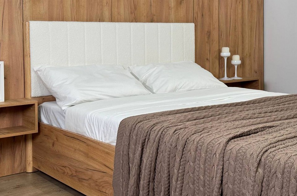 Состоит из: изголовья с мягким элементом, каркаса из ЛДСП и места спального с подъемным основанием. Стильное решение для современного интерьера, кровать 'Юлия' 140х200 см. Юлия представляет собой идеальное сочетание элегантности и функциональности. Эта кровать выполнена из прочного ЛДСП с мягким изголовьем из приятного на ощупь и практичного в быту материала. Полукруглые МДФ профили в изножье и изголовье обеспечат безопасность и комфорт. Для полноты комфорта учитывайте, что основание для кровати, матрас и настил следует приобрести отдельно. Кровать 'Юлия' отлично сочетается со всеми модулями спальни 'Адам' и 'Зара'.