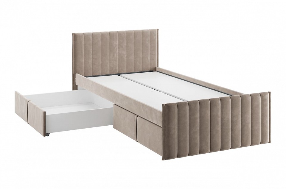 Состоит из: мягкого каркаса, выкатные ящики. Сборка: универсальная. Мягкая кровать 'Твикс' – это сочетание комфорта, стиля и функциональности, идеально подходящее для современного интерьера. Мягкое изголовье обеспечивает дополнительную поддержку для спины во время чтения или отдыха. А мягкие корпус и фасады ящиков, обтянутые высококачественным велюром, создают уютную атмосферу и дополнительную безопасность Кровать оснащена удобными выкатными ящиками на роликах высотой Н30, что позволяет легко хранить игрушки, постельное белье или другие вещи, сохраняя порядок в комнате. Армированное основание из ЛДСП обеспечивает надежную поддержку матраса и гарантирует удобный сон. Дизайн кровати 'Твикс' легко вписывается в любые интерьеры – от минималистичных до классических, а разнообразие цветовых решений позволяет выбрать оптимальный вариант для вашего домашнего пространства. Откройте для себя не только практичность, но и стиль с кроватью 'Твикс'! Матрац в комплектацию кровати не входит.