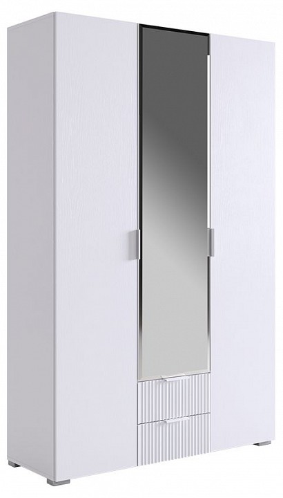 Хотите создать уютную и функциональную обстановку в вашей комнате? Шкаф 'Зефир' трехдверный 109. 02 - идеальное решение для вас! Замечательное сочетание дизайна, практичности и высокого качества материалов делает его привлекательным выбором для вашего интерьера. Габариты 1200х422х1900 мм обеспечат достаточное пространство для хранения одежды, белья и других предметов, а стильные и спокойные цвета шкафа придают ему шарм и изысканность. Корпус шкафа изготовлен из ЛДСП в цвете белое дерево, что придаст помещению светлую и уютную атмосферу. Фасады распашных дверей выполнены из ЛДСП в цвете белое дерево. Фасады выкатных ящиков выполнены из МДФ, покрытие эмаль. Вертикальные полосы на фасаде создают особую изысканность и стильный акцент, добавляя глубины пространству. Фрезеровка в виде вертикальных полос на фасадах выкатных ящиков создает интересный и стильный акцент. Но не только его внешний вид впечатляет. Шкаф 'Зефир' обладает практичным и удобным внутренним наполнением. Среднее отделение оснащено двумя ящиками с шариковыми направляющими, что позволяет легко и плавно открывать и закрывать их. А зеркальное покрытие на средней двери добавляет функциональности и помогает при выборе образа. Качество и надежность — вот что отличает наш продукт. Шкаф 'Зефир' оснащен 4-х шарнирными петлями с доводчиками, обеспечивающим бесшумное закрывание фасадов. Кромка из ПВХ толщиной 0,4 мм оберегает шкаф от повреждений, а металлические ручки выглядят элегантно и удобны в использовании. И черные ножки из пластика придают шкафу стабильность и надежность. Универсальная сборка позволяет легко и быстро монтировать шкаф 'Зефир'. Две секции - одна с штангой и двумя полками, а вторая с пятью полками - обеспечивают удобство и легкость в хранении ваших вещей. Шкаф 'Зефир' трехдверный 109. 02 — это практичность, качество и стиль в одном продукте. Он станет идеальным решением для вашего интерьера, добавив в него элегантности и удобства. Покупайте сейчас и создайте идеальный порядок в своей комнате!