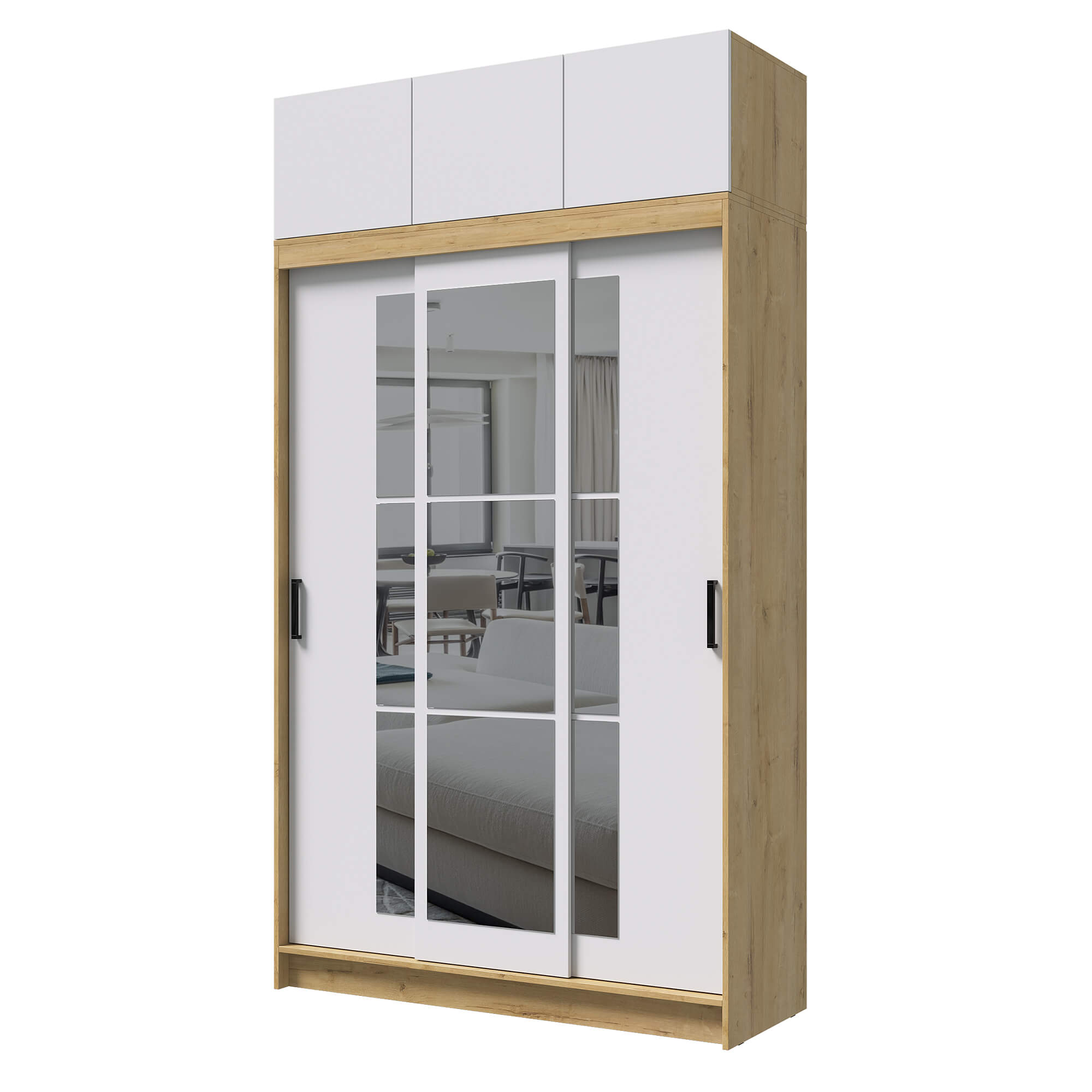 Шкаф-купе БРУНО 2 с антресолью Дуб вотан/Белый гладкий.