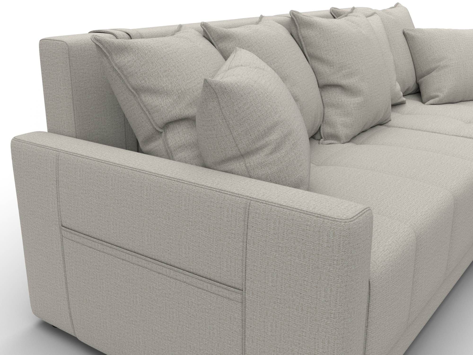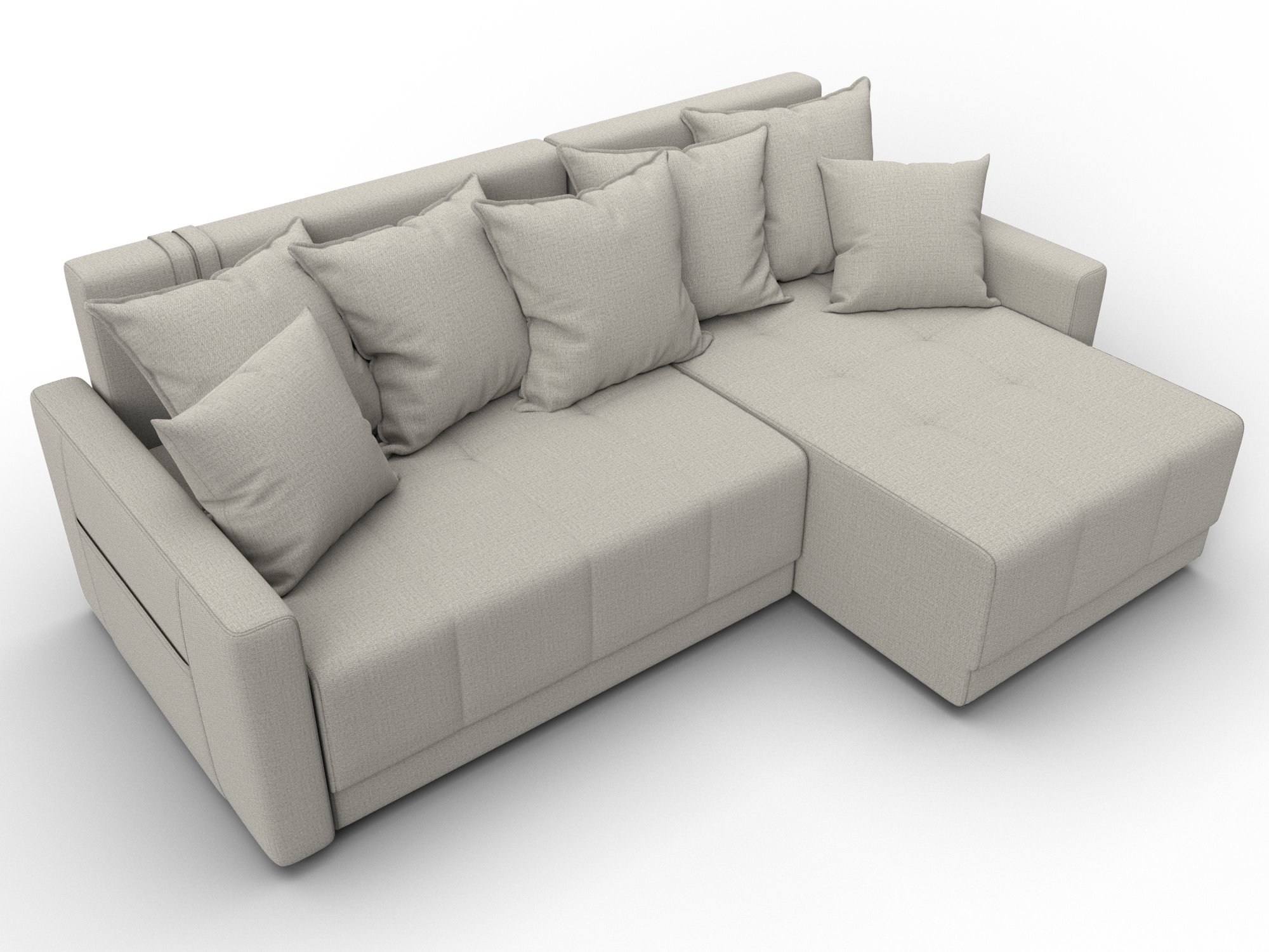 Угловой диван Лига-125 представляет собой бюджетный вариант современного раскладного дивана-кровати с интересным дизайном и прочным каркасом из ДСП, ЛДСП, фанеры и бруса. Мягкие съемные подушки дополняют спинку изделия, а прямые мягкие подлокотники обеспечат удобство и комфорт. Под сиденьем расположен вместительный ящик для белья. Устойчивость и надежность конструкции обеспечивают пластиковые крепкие ножки. Угловой диван прекрасно впишется в интерьер как жилой комнаты, так и офиса. В качестве варианта для сна модель тоже отлично подойдет. При раскладывании длина автоматически станет шириной, что позволит свободно лечь двоим. Широкий выбор расцветок позволяет подобрать оптимальный вариант под стилистику помещения. Особенности углового дивана Лига-125: - Изготовлен из первоклассных материалов. - На подлокотниках удобные карманы для мелочей. - Крепкие пластиковые ножки. - Мягкие подлокотники. - Ящик для белья под сиденьем. Угловой диван Лига-125 представляет собой бюджетный вариант современного раскладного дивана-кровати с интересным дизайном и прочным каркасом из ДСП, ЛДСП, фанеры и бруса. Мягкие съемные подушки дополняют спинку изделия, а прямые мягкие подлокотники обеспечат удобство и комфорт. Под сиденьем расположен вместительный ящик для белья. Устойчивость и надежность конструкции обеспечивают пластиковые крепкие ножки. Угловой диван прекрасно впишется в интерьер как жилой комнаты, так и офиса. В качестве варианта для сна модель тоже отлично подойдет. При раскладывании длина автоматически станет шириной, что позволит свободно лечь двоим. Широкий выбор расцветок позволяет подобрать оптимальный вариант под стилистику помещения.