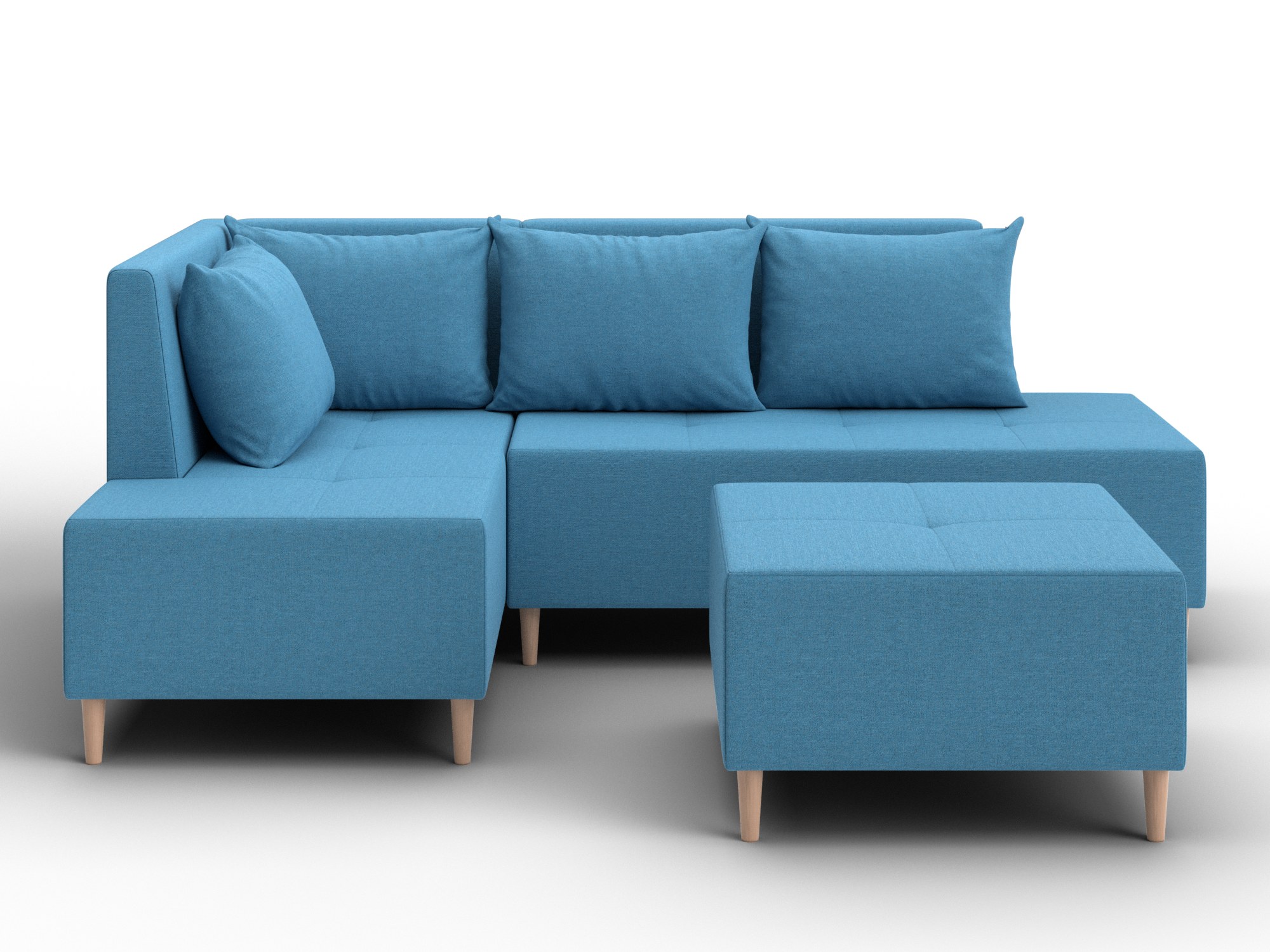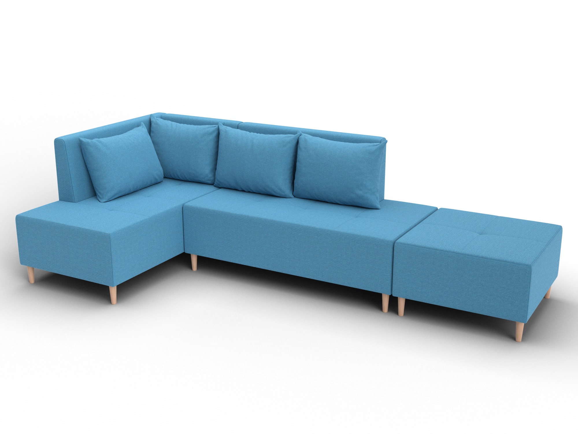 Модульный диван с пуфом Лига-126 – это современное решение для тех, кто ценит гибкость и функциональность. Модель состоит из двух основных модулей и отдельного пуфа. Вы можете собрать угловой диван, удобную зону отдыха или приставить пуф к дивану, чтобы удлинить спальное место. Прочный каркас из ДСП, ЛДСП, фанеры и бруса гарантирует надёжность и долгий срок службы. Мягкие съёмные подушки обеспечивают комфорт, а пуф (75×75×42 см) можно использовать как дополнительное сиденье, подставку для ног или небольшой столик. Высокие деревянные ножки придают дивану элегантный вид, обеспечивают устойчивость и облегчают уборку под ним. Диван прекрасно впишется в интерьер как гостиной, так и небольшой студии. Спальное место – 60×197 см, комфортное для одного взрослого. Широкий выбор расцветок позволяет подобрать оптимальный вариант под вашу стилистику. Особенности модульного дивана с пуфом Лига-126: - Два основных модуля + пуф – можно собирать в разных вариациях. - Пуф удлиняет диван, расширяет зону сидения или служит подставкой для ног. - Изготовлен из экологичных и гипоаллергенных материалов. - Высокие деревянные ножки – устойчивость, стиль и удобство уборки. - Спальное место 60×197 см для одного взрослого. Модульный диван с пуфом Лига-126 – это современное решение для тех, кто ценит гибкость и функциональность. Модель состоит из двух основных модулей и отдельного пуфа. Вы можете собрать угловой диван, удобную зону отдыха или приставить пуф к дивану, чтобы удлинить спальное место. Прочный каркас из ДСП, ЛДСП, фанеры и бруса гарантирует надёжность и долгий срок службы. Мягкие съёмные подушки обеспечивают комфорт, а пуф (75×75×42 см) можно использовать как дополнительное сиденье, подставку для ног или небольшой столик. Высокие деревянные ножки придают дивану элегантный вид и облегчают уборку. Спальное место – 60×197 см. Широкий выбор расцветок.
