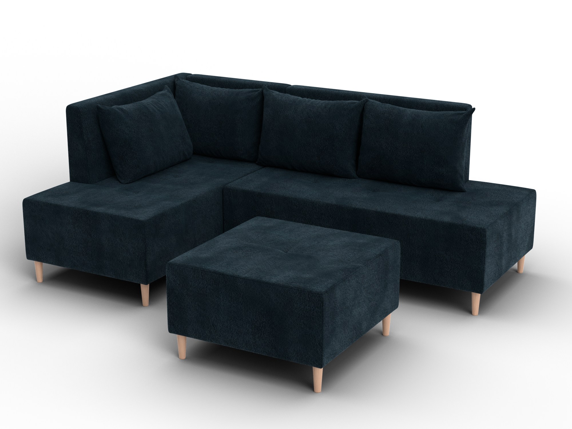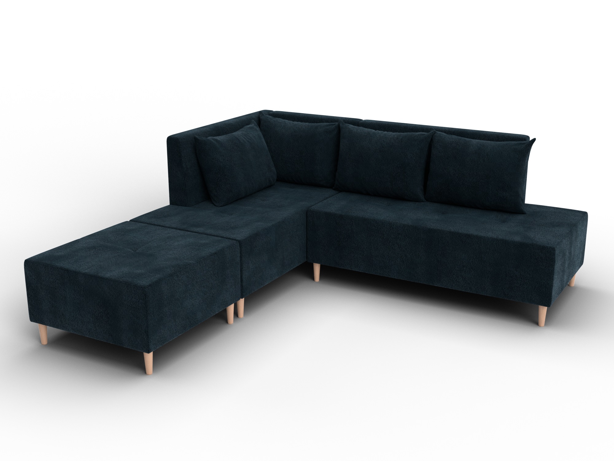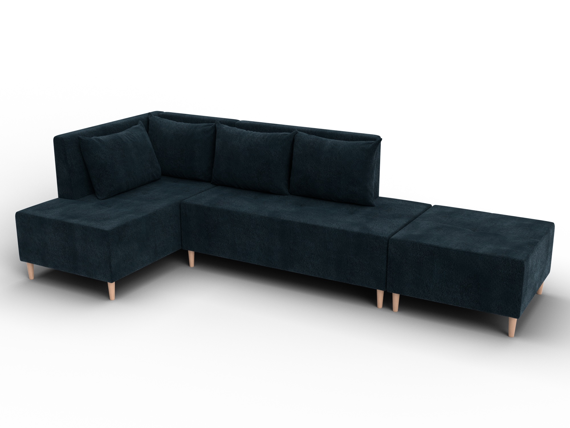 Модульный диван с пуфом Лига-126 – это современное решение для тех, кто ценит гибкость и функциональность. Модель состоит из двух основных модулей и отдельного пуфа. Вы можете собрать угловой диван, удобную зону отдыха или приставить пуф к дивану, чтобы удлинить спальное место. Прочный каркас из ДСП, ЛДСП, фанеры и бруса гарантирует надёжность и долгий срок службы. Мягкие съёмные подушки обеспечивают комфорт, а пуф (75×75×42 см) можно использовать как дополнительное сиденье, подставку для ног или небольшой столик. Высокие деревянные ножки придают дивану элегантный вид, обеспечивают устойчивость и облегчают уборку под ним. Диван прекрасно впишется в интерьер как гостиной, так и небольшой студии. Спальное место – 60×197 см, комфортное для одного взрослого. Широкий выбор расцветок позволяет подобрать оптимальный вариант под вашу стилистику. Особенности модульного дивана с пуфом Лига-126: - Два основных модуля + пуф – можно собирать в разных вариациях. - Пуф удлиняет диван, расширяет зону сидения или служит подставкой для ног. - Изготовлен из экологичных и гипоаллергенных материалов. - Высокие деревянные ножки – устойчивость, стиль и удобство уборки. - Спальное место 60×197 см для одного взрослого. Модульный диван с пуфом Лига-126 – это современное решение для тех, кто ценит гибкость и функциональность. Модель состоит из двух основных модулей и отдельного пуфа. Вы можете собрать угловой диван, удобную зону отдыха или приставить пуф к дивану, чтобы удлинить спальное место. Прочный каркас из ДСП, ЛДСП, фанеры и бруса гарантирует надёжность и долгий срок службы. Мягкие съёмные подушки обеспечивают комфорт, а пуф (75×75×42 см) можно использовать как дополнительное сиденье, подставку для ног или небольшой столик. Высокие деревянные ножки придают дивану элегантный вид и облегчают уборку. Спальное место – 60×197 см. Широкий выбор расцветок.