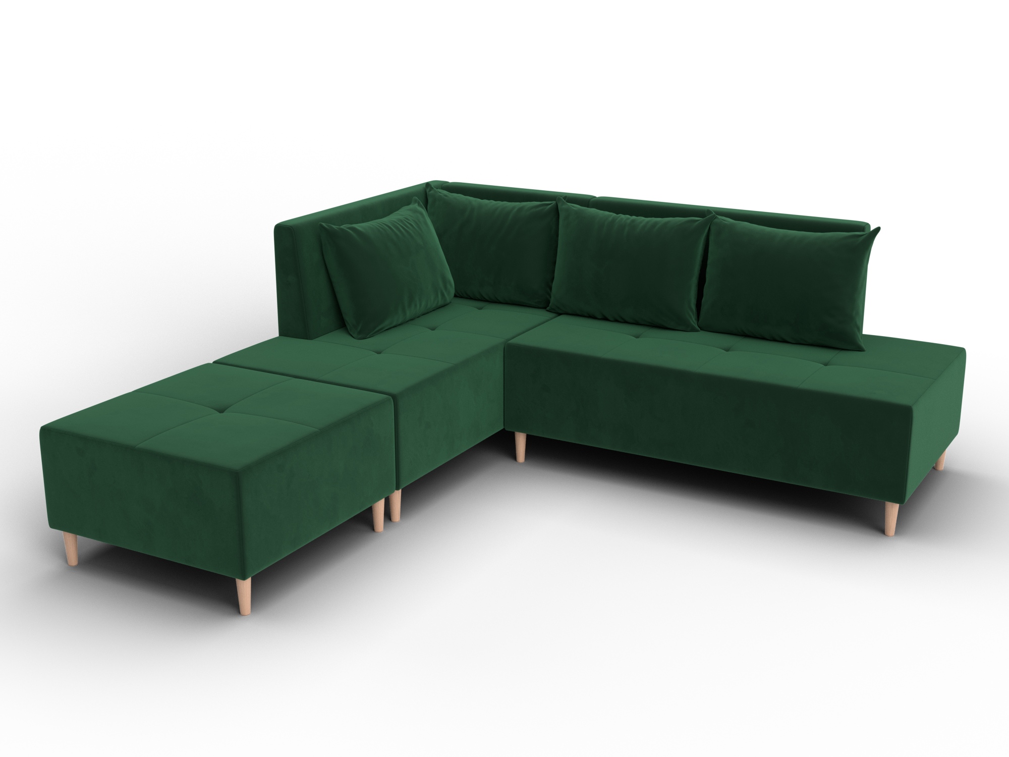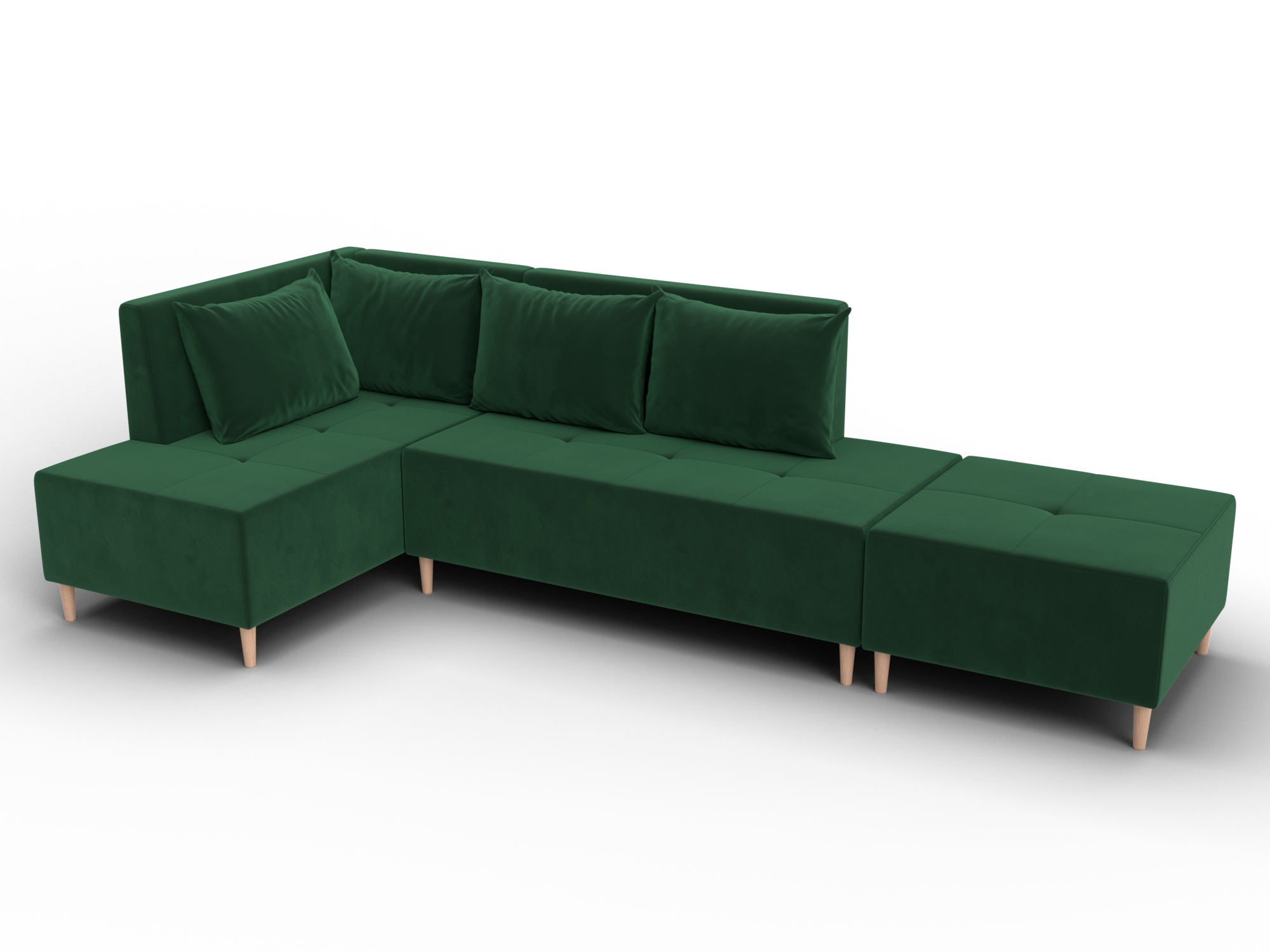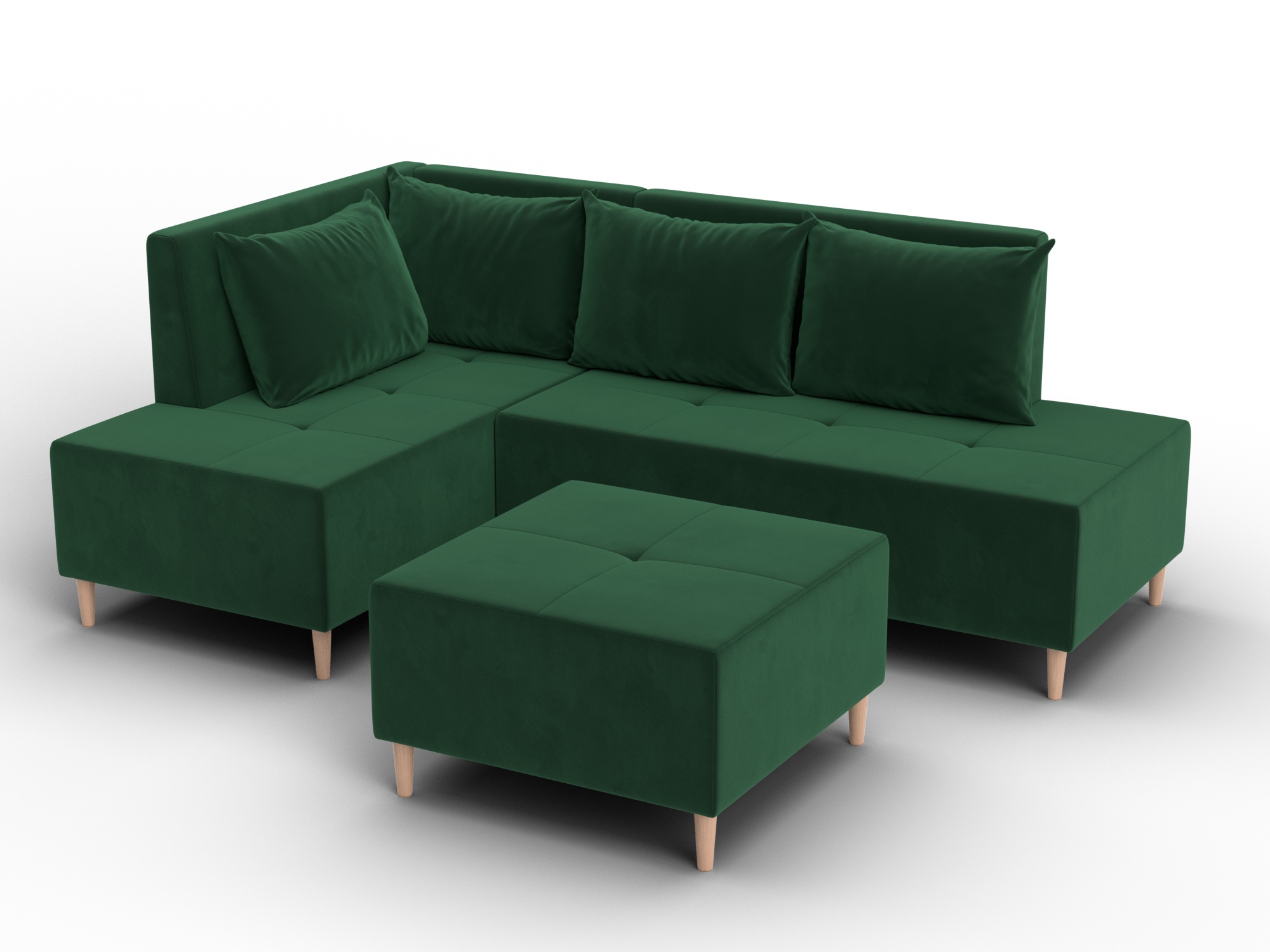 Модульный диван с пуфом Лига-126 – это современное решение для тех, кто ценит гибкость и функциональность. Модель состоит из двух основных модулей и отдельного пуфа. Вы можете собрать угловой диван, удобную зону отдыха или приставить пуф к дивану, чтобы удлинить спальное место. Прочный каркас из ДСП, ЛДСП, фанеры и бруса гарантирует надёжность и долгий срок службы. Мягкие съёмные подушки обеспечивают комфорт, а пуф (75×75×42 см) можно использовать как дополнительное сиденье, подставку для ног или небольшой столик. Высокие деревянные ножки придают дивану элегантный вид, обеспечивают устойчивость и облегчают уборку под ним. Диван прекрасно впишется в интерьер как гостиной, так и небольшой студии. Спальное место – 60×197 см, комфортное для одного взрослого. Широкий выбор расцветок позволяет подобрать оптимальный вариант под вашу стилистику. Особенности модульного дивана с пуфом Лига-126: - Два основных модуля + пуф – можно собирать в разных вариациях. - Пуф удлиняет диван, расширяет зону сидения или служит подставкой для ног. - Изготовлен из экологичных и гипоаллергенных материалов. - Высокие деревянные ножки – устойчивость, стиль и удобство уборки. - Спальное место 60×197 см для одного взрослого. Модульный диван с пуфом Лига-126 – это современное решение для тех, кто ценит гибкость и функциональность. Модель состоит из двух основных модулей и отдельного пуфа. Вы можете собрать угловой диван, удобную зону отдыха или приставить пуф к дивану, чтобы удлинить спальное место. Прочный каркас из ДСП, ЛДСП, фанеры и бруса гарантирует надёжность и долгий срок службы. Мягкие съёмные подушки обеспечивают комфорт, а пуф (75×75×42 см) можно использовать как дополнительное сиденье, подставку для ног или небольшой столик. Высокие деревянные ножки придают дивану элегантный вид и облегчают уборку. Спальное место – 60×197 см. Широкий выбор расцветок.