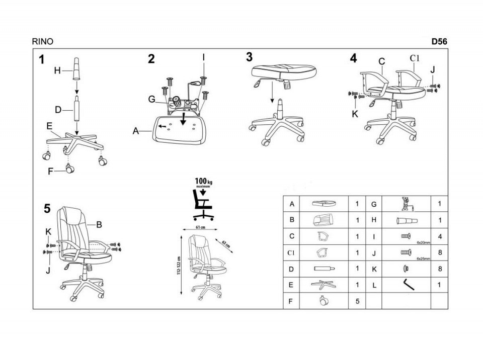 Габариты (ШхГхВ): 610x630x1120-1220 мм.