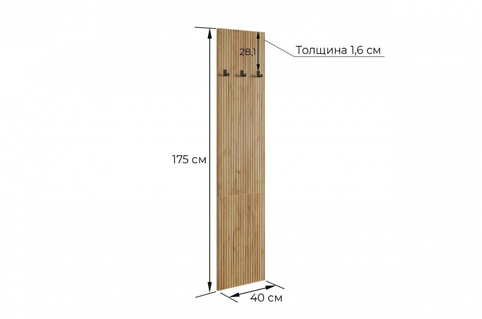 Вешалка настенная Бодрум разноцветная дуб крафт золотой 400x16x1750.